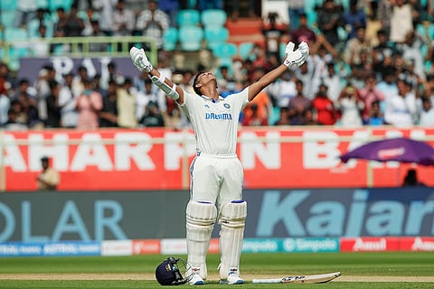 அஸ்வின் ஆட்டமிழந்தவுடன் அடுத்த ஓவரில் ஸ்டிரைக்குக்கு வந்த ஜெயிஸ்வால் முதலிரு பந்துகளில் சிக்ஸரும், பவுண்டரியும் அடித்து 277-வது பந்தில் இரட்டைச் சதத்தை எட்டினார். வினோத் காம்ப்ளி, சுனில் காவஸ்கருக்குப் பிறகு டெஸ்டில் குறைந்த வயதில் இரட்டைச் சதம் அடித்த மூன்றாவது இந்தியர் என்கிற பெருமையையும் ஜெயிஸ்வால் பெற்றார்.