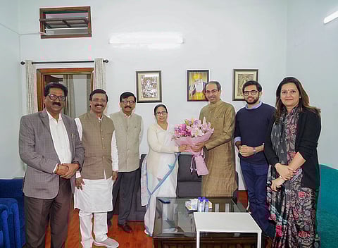உத்தவ் தாக்கரே குடும்பத்தினரைச் சந்தித்த மமதா பானர்ஜி (கோப்புப்படம்)ANI