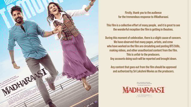 ”மதராஸி படத்திற்கு ரசிகர்களான நீங்கள் அளித்து வரும் மகத்தான வரவேற்புக்கு நன்றி தெரிவித்துக் கொள்கிறோம். இந்தப் படம் பலரது கூட்டு முயற்சியால் உருவாகி, திரையரங்குகளில் நல்ல வரவேற்பைப் பெற்று வருகிறது. கொண்டாட்டம் மிகுந்த இந்தத் தருணத்தில், ஒரு சிறிய கவலையும் உள்ளது. மதராஸி படத்தில் பணியாற்றிய சிலர், படப்பிடிப்புத் தளப் புகைப்படங்கள், காணொலிகள் மற்றும் தயாரிப்பு நிறுவனத்தால் அங்கீகரிக்கப்படாத செய்திகளைச் சமூக வலைத்தளங்களில் பரப்பி வருவதை நாங்கள் கவனித்துள்ளோம். இது தயாரிப்பாளர்களுக்கு நியாயமற்றது. அவ்வாறு செய்யும் சமூக வலைத்தள கணக்குகள் புகார் அளிக்கப்பட்டு நீக்கப்படும். ஊடகங்களில் வெளியிடும் அனைத்து படம், காணொளிகளும் தயாரிப்பு நிறுவனமான ஸ்ரீலட்சுமி மூவீஸால் அங்கீகரிக்கப்பட்டிருக்க வேண்டும்” இவ்வாறு தெரிவிக்கப்பட்டுள்ளது.