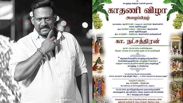 ”கிழக்குச்சீமையிலே மானுத்து மந்தையிலே கேள்விப்பட்டிருப்பீர்கள், மானுத்து சீமையில்!! பெத்தன சுவாமி திருக்கோவிலில் நடைபெறுகிறது. பாரம்பரியம் பேசும் பொற்கணத்தில், எங்கள் குட்டியின் காது குத்தும் விழா... உங்கள் வருகையால் நிறைவு பெறும்” என்று குறிப்பிடப்பட்டுள்ளது.
