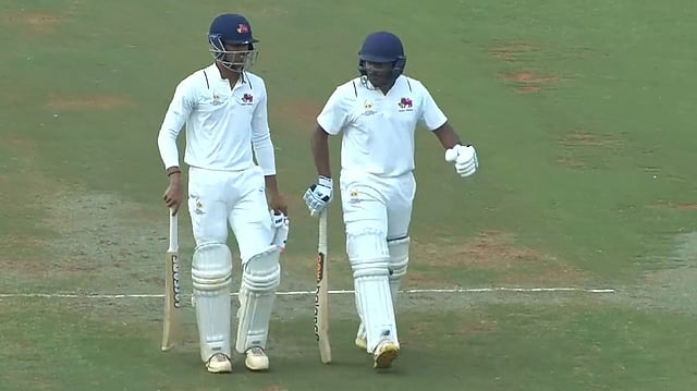 மும்பை - பரோடா இடையிலான ரஞ்சி கோப்பை காலிறுதி ஆட்டம் நடைபெற்று வருகிறது. முதல் இன்னிங்ஸில் மும்பை அணி 384 ரன்கள் எடுத்து ஆட்டமிழந்தது. இதைத் தொடர்ந்து பரோடா அணி முதல் இன்னிங்ஸில் 348 ரன்கள் எடுத்தது. இதன் பிறகு 2-வது இன்னிங்ஸில் மும்பை அணி 9 விக்கெட் இழப்புக்கு 337 ரன்கள் எடுத்திருந்த நிலையில் 10, 11-வதாகக் களமிறங்கிய கோட்டியன் மற்றும் தேஷ்பாண்டே ஆகியோர் அருமையான கூட்டணியை அமைத்தனர்.
