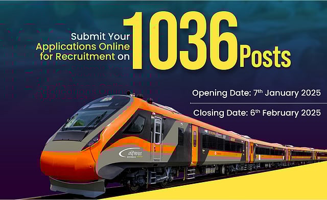 1036 காலிப் பணியிடங்களுக்கான வேலைவாய்ப்பு அறிவிப்பை வெளியிட்டுள்ளது மத்திய ரயில்வே அமைச்சகம்.