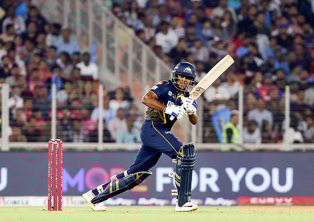 இம்முறை ஷாருக் கான் முன்கூட்டியே களமிறக்கப்பட்டார். அவரும் அணியில் தக்கவைக்கப்பட்டதற்கு நியாயம் சேர்க்கும் விதமாக நடு ஓவர்களில் தூள் கிளப்பினார். சாய் சுதர்சன், ஷாருக் கான் இணை 3-வது விக்கெட்டுக்கு 34 பந்துகளில் 62 ரன்கள் எடுத்தது. ஷாருக் கான் 20 பந்துகளில் 36 ரன்கள் எடுத்து ஆட்டமிழந்தார்.