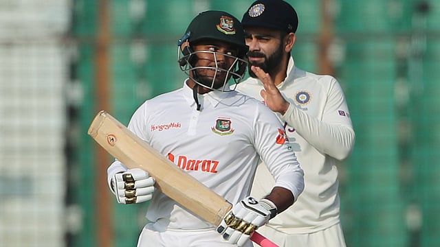 இதன் மூலம் வங்கதேச அணிக்கு 515 ரன்கள் இலக்காக நிர்ணயிக்கப்பட்டது. இமாலய இலக்கை நோக்கி விளையாடிய வங்கதேச அணி 2-வது இன்னிங்ஸில் நிதானமான ஆட்டத்தை வெளிப்படுத்தி வருகிறது.
