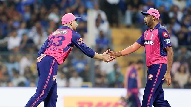 இதைத் தொடர்ந்து விளையாடிய ராஜஸதான் அணிக்கும் தொடக்கம் சரியாக அமையவில்லை. ஜெயிஸ்வால் 10, சாம்சன் 12, பட்லர் 13, அஸ்வின் 16 ரன்களில் அடுத்தடுத்து வெளியேறினர். கடந்த ஆட்டத்தில் ரன்களை வாரி வழங்கிய மபாக, ஜெயிஸ்வாலின் விக்கெட்டை எடுத்தார். ஆகாஷ் மத்வால் 3 விக்கெட்டுகளை வீழ்த்தினார்.