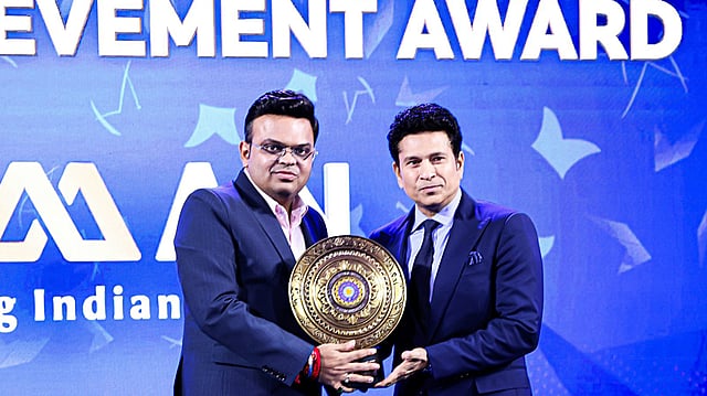 பிசிசிஐ-யின் நமன் விருதுகள் வழங்கும் விழா மும்பையில் சனிக்கிழமை நடைபெற்றது. இதில் இந்திய கிரிக்கெட் ஜாம்பவான் சச்சின் டெண்டுல்கருக்கு வாழ்நாள் சாதனையாளர் விருது வழங்கி கௌரவிக்கப்பட்டது. ஐசிசி தலைவர் ஜெய் ஷா, சச்சின் டெண்டுல்கருக்கு விருதை வழங்கினார். இந்த விருதைப் பெறும் 31-வது வீரர் சச்சின் டெண்டுல்கர்.