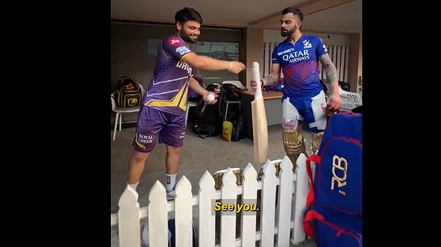 கோலியிடம் தனக்கு பேட் தருமாறு ரிங்கு சிங் கேட்க, உனக்கு பேட் தர முடியாது என கோலி கூறியுள்ளார். இது தொடர்பான காணொளி அதிகமாகப் பகிரப்பட்டுவருகிறது.