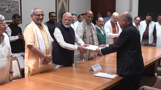 குடியரசுத் துணைத் தலைவர் தேர்தலுக்காக தேசிய ஜனநாயக கூட்டணியின் வேட்பாளர் சி.பி. ராதாகிருஷ்ணன் இன்று (ஆக. 20) வேட்புமனுத் தாக்கல் செய்தார்.