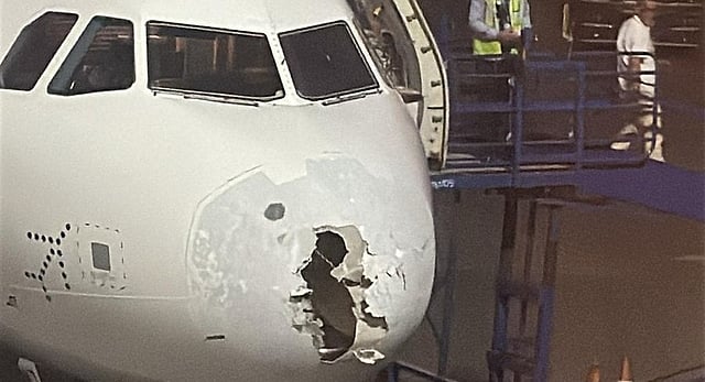 கடந்த மே 21 மாலையில் இண்டிகோ பயணியர் விமானம் (6ஏ-2142) ஒன்று, தலைநகர் தில்லியில் இருந்து ஸ்ரீநகர் நோக்கிக் கிளம்பியது. பஞ்சாப் மாநிலம் பதான்கோட்டிற்கு மேலே, சுமார் 36,000 அடி உயரத்தில் விமானம் பறந்து கொண்டிருந்தபோது, இடியுடன் கூடிய ஆலங்கட்டி மழை சரமாரியாக பெய்துள்ளது.