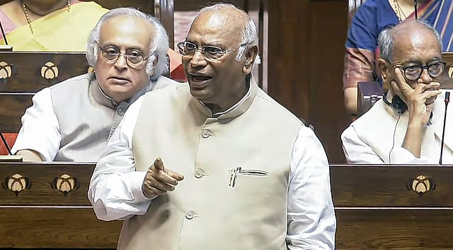 `நமது முந்தைய தலைவர்கள்கூட கூட்டத்தொடரை சீர்குலைப்பது ஜனநாயகத்தின் ஒரு பகுதி என்று கூறி வந்தனர். ஆனால் இன்று இந்த சபையை யார் நடத்துகிறார்கள் என்று நான் உங்களிடம் கேட்கிறேன் - நீங்களோ அல்லது அமித் ஷாவோ?’ என்று கார்கே மாநிலங்களவை துணைத் தலைவரை நோக்கிக் கேள்வி எழுப்பினார்.