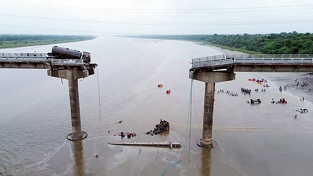குஜராத்தின் வதோதரா மாவட்டத்தில் மஹிசாகர் ஆற்றின் மீது அமைந்துள்ள கம்பீரா பாலம் நேற்று (ஜூலை 9) காலை இடிந்து விழுந்ததில் இதுவரை 15 பேர் உயிரிழந்துள்ளதாக செய்தி வெளியாகியுள்ளது.