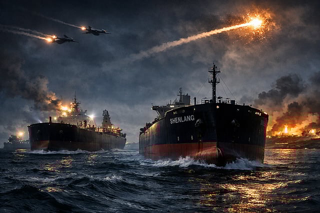ஈரானிடம் எக்குத்தப்பாக சிக்கி மீண்ட கதை இதுவென்றால், யாரிடமும் சிக்காமல் சாமர்த்தியமாக கப்பல் வந்தது தான் அடுத்த கதை! இது நடந்தது மார்ச் 11. ஈரான் - இஸ்ரேல் போர் தொடங்கி சரியாக 12-வது நாள். சவுதி அரேபியாவில் ராஸ் டனுரா முனையத்திலிருந்து 1.35 லட்சம் டன் கச்சா எண்ணெயுடன் மார்ச் 1 அன்று புறப்பட்டது ஷென்லாங் சூயஸ்மேக்ஸ் என்ற எண்ணெய்க் கப்பல். இது தென்னாப்ரிக்க நாடான லைபீரியா கொடியுடன் கூடிய, இந்தியாவுக்கு கச்சா எண்ணெய் கொண்டு வருவதற்கான அனுப்பப்பட்ட கப்பல். பாகிஸ்தானி, பிலிப்பைன்ஸ் நாட்டினர், இந்தியர்கள் உட்பட 29 பேரைக் கொண்டிருந்த இந்தக் கப்பலுக்கு இந்தியர் ஒருவர்தான் கேப்டனாக இருந்தார். இது புறப்பட்ட நாள் என்பது ஈரான் - இஸ்ரேல், அமெரிக்கா போர் தொடங்கியதற்கு அடுத்த நாள். சவுதி அரேபியாவின் துறைமுகத்திலிருந்து புறப்பட்ட ஷென்லாங் கப்பலுக்கு முன்னால் இருந்த சவால் சாதாரணமானது அல்ல. ஹார்முஸ் நீரிணையைத் தாண்டினால் மட்டுமே இந்தியப் பெருங்கடலை அடைய முடியும். ஆனால், அந்தப் பாதையோ ஈரானியப் படைகளின் முழுக் கட்டுப்பாட்டில் இருந்தது. இதனால் ஒரு துணிச்சலான முடிவை எடுத்தார், கப்பலின் கேப்டன் சுக்ஷாந்த் சிங் சந்து.