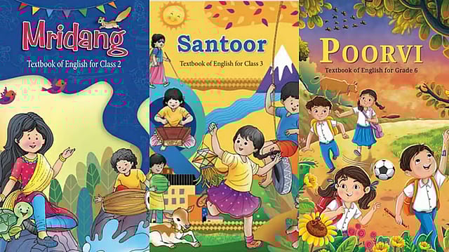 சிபிஎஸ்இ பாட திட்டத்திற்கான புத்தகங்கள், மத்திய அரசின் அமைப்பான என்.சி.இ.ஆர்.டி.யால் வெளியிடப்படுகின்றன. 2-ம் வகுப்பு ஆங்கிலப் பாட புத்தகத்தின் தலைப்பு மிருதங் எனவும், 3-ம் வகுப்பு புத்தகத்தின் தலைப்பு சந்தூர் எனவும், 6-ம் வகுப்பு புத்தகத்தின் தலைப்பு பூர்வி எனவும் பெயரிடப்பட்டுள்ளது.