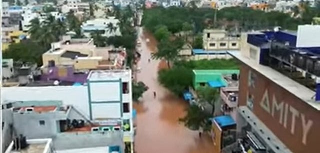விடாது பெய்த கனமழையால் புதுச்சேரியின் பல்வேறு பகுதிகளில் வெள்ள நீர் சூழ்ந்துள்ளது. குறிப்பாக கடற்கரையை ஒட்டி அமைந்துள்ள முத்தியால்பேட்டைக்கு அருகே இருக்கும் ஜம்மயத் நகர் முழுவதும் வெள்ள நீரில் மூழ்கியது. அங்கிருக்கும் வீடுகளில் சிக்கியிருந்த மக்கள் படகுகளின் மூலம் மீட்கப்பட்டனர்.