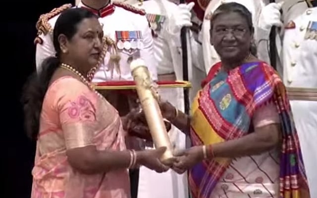 விஜயகாந்துக்கு அறிவிக்கப்பட்ட பத்ம பூஷண் விருதை குடியரசுத் தலைவர் திரௌபதி முர்முவிடமிருந்து பிரேமலதா விஜயகாந்த் பெற்றுக்கொண்டார்.