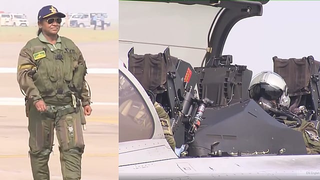 President Droupadi Murmu flew in a Rafale fighter jet wearing the uniform of the armed forces. Earlier, she had flown in a Sukhoi-30 MKI fighter jet at the Tezpur Air Force base in Assam in 2023.