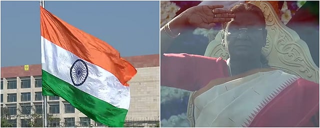 76-வது குடியரசு நாளை முன்னிட்டு குடியரசுத் தலைவர் திரௌபதி முர்மு தில்லி ராஜபாதையில் தேசியக் கொடியைப் பறக்கவிட்டார்.