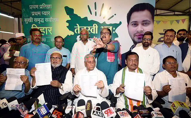 ராஷ்ட்ரீய ஜனதா தளம், காங்கிரஸ் மற்றும் இடதுசாரிகள் கட்சித் தலைவர்கள் ராஷ்ட்ரீய ஜனதா தளம் தலைமையகத்தில் கூட்டாகச் செய்தியாளர்களைச் சந்தித்தார்கள்.
