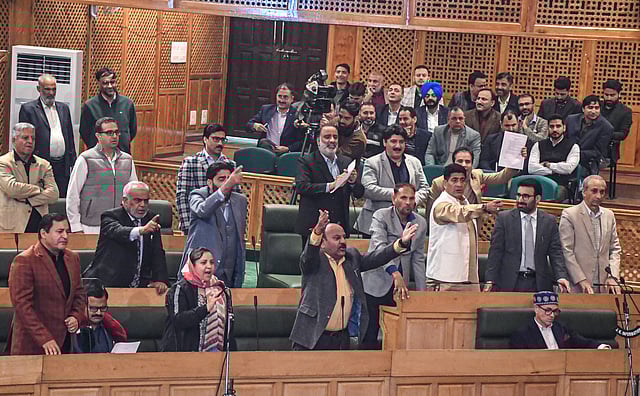 இதன்பிறகு, ஜம்மு-காஷ்மீர் சட்டப்பேரவை கடந்த திங்கள்கிழமை கூடியது. சட்டப்பேரவைக் கூட்டத்தின் முதல் நாளன்று மக்கள் ஜனநாயகக் கட்சி சட்டப்பேரவை உறுப்பினர் வஹீத் பாரா, அரசியலமைப்புச் சட்டப்பிரிவு 370 ரத்து செய்யப்பட்டதற்கு எதிராக தீர்மானம் கொண்டு வந்தார். பாஜக சட்டப்பேரவை உறுப்பினர்கள் இதற்குக் கடும் எதிர்ப்பு தெரிவித்து, அமளியில் ஈடுபட்டார்கள். இதனால், அன்றைய நாள் முழுக்க அவை ஒத்திவைக்கப்பட்டது.