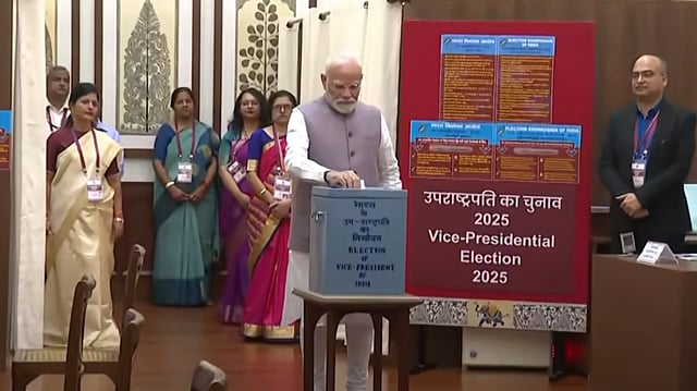 குடியரசு துணைத் தலைவர் பதவிக்கானத் தேர்தல் காலை 10 மணிக்குத் தொடங்கிய நிலையில், பிரதமர் நரேந்திர மோடி முதல் வாக்காளராக வாக்களித்துள்ளார்.