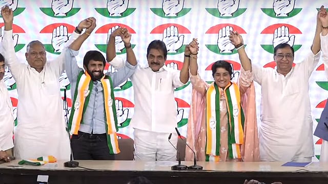 ஹரியானாவில் சட்டப்பேரவைத் தேர்தல் வரவுள்ள நிலையில் மல்யுத்த வீரர்கள் பஜ்ரங் புனியா, வினேஷ் போகாட் ஆகியோர் காங்கிரஸில் இணைந்துள்ளார்கள்.