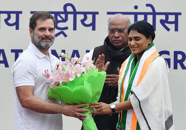 புத்தாண்டுத் தினத்தையொட்டி தில்லிக்குப் பயணமான ஒய்.எஸ். ஷர்மிளா, காங்கிரஸ் கட்சித் தலைவர் மல்லிகார்ஜுன் கார்கே மற்றும் ராகுல் காந்தி முன்னிலையில் கட்சியில் இணைந்தார். தலைமைப் பொறுப்பு தரப்படும் என்று தில்லி தலைமை அளித்த உறுதியின் அடிப்படையில் தன்னுடைய கட்சியை காங்கிரஸ் கட்சியில் இணைப்பதற்குச் சம்மதித்ததாக சொல்லப்படுகிறது.
