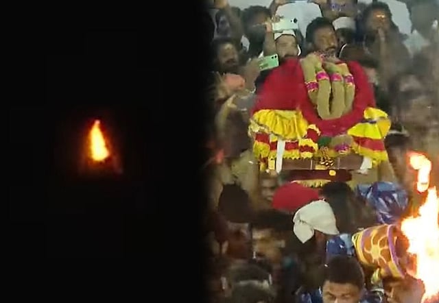 சபரிமலை பொன்னம்பல மேட்டில் இன்று (ஜன.14) ஏற்றப்பட்ட மகரஜோதியை லட்சக்கணக்கான பக்தர்கள் தரிசனம் செய்தனர்.