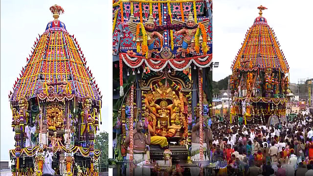 திருப்பதியில் கோலாகலமாக நடைபெற்று வரும் வருடாந்திர பிரம்மோற்சவத்தின் 8-ம் நாளான இன்று காலை மலையப்ப சுவாமி எழுந்தருளிய பிரம்மாண்ட தேரை பக்தர்கள் வடம் பிடித்திழுத்தனர்.