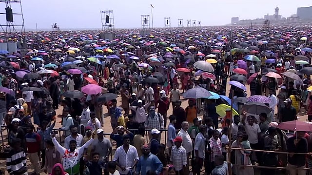 இந்த நிகழ்ச்சியைக் காண மெரினாவில் பொதுமக்கள் கூட்டம் அலைமோதியது. இதனால் ஏற்பட்ட கூட்ட நெரிசலில் சிக்கி சுமார் 20-க்கும் மேற்பட்ட மக்கள் மயக்கமடைந்தனர். அவர்கள் அனைவரும் ஆம்புலன்ஸ் மூலம் மீட்கப்பட்டு, சிகிச்சைக்காக மருத்துவமனைக்கு அனுப்பி வைக்கப்பட்டனர்