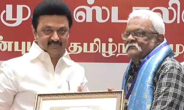 திருவள்ளுவர் உருவப் படத்திற்கு மரியாதை செலுத்திய முதல்வர் ஸ்டாலின், அய்யன் திருவள்ளுவர் உள்ளிட்ட தமிழ்நாடு அரசின் திருவள்ளுவர் தின விருதுகளை இன்று (ஜன.15) வழங்கினார்.