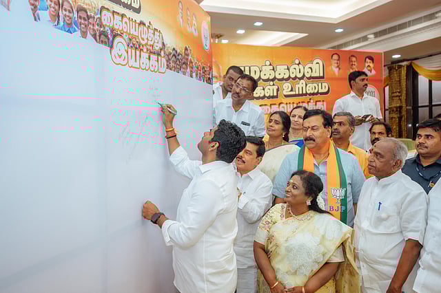 தேசிய கல்விக் கொள்கையில் குறிப்பிடப்பட்டுள்ள மும்மொழிக் கொள்கைக்கு ஆதரவாக, பொதுமக்களிடம் கையெழுத்து பெறும் வகையிலான கையெழுத்து இயக்கத்தை தமிழக பாஜக கடந்த மார்ச் 5-ல் முன்னெடுத்தது.