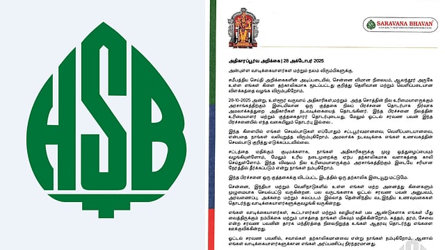 28-10-2025 அன்று, உள்ளூர் வருவாய் அதிகாரிகள்,மற்றும் அந்த சொத்தின் நில உரிமையாளருக்கும் அரசாங்கத்திற்கும் இடையிலான ஒரு குத்தகை நிலப் பிரச்னை தொடர்பாக நிர்வாக அமலாக்கத்துறை அதிகாரிகள் நடவடிக்கையைத் தொடங்கினர். இந்த பிரச்னை நிலத்தின் உரிமையாளர் மற்றும் குத்தகைதாரர் தொடர்புடையது, மேலும், சரவண பவன் உணவகத்திற்கு இந்த பிரச்னையில் எந்த வகையிலும் தொடர்பு இல்லை.
