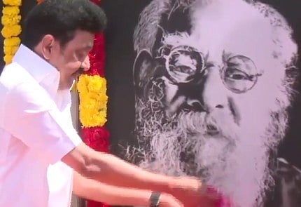 சென்னை அண்ணாசாலை தமிழ்நாடு அரசு பன்னோக்கு உயர் சிறப்பு மருத்துவமனைக்கு அருகே உள்ள தந்தை பெரியாரின் சிலைக்கு திமுக தலைவரும், தமிழக முதல்வருமான மு.க. ஸ்டாலின் மலர் தூவி மரியாதை செய்தார். அவருடன் தமிழக அமைச்சர்கள், திமுக நாடாளுமன்ற, சட்டமன்ற உறுப்பினர்கள் ஆகியோர் உடனிருந்தனர்.