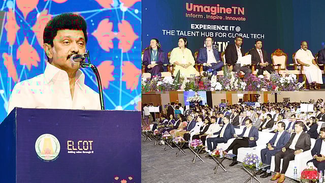 "தகவல் தொழில்நுட்பத்தை முன்வைத்து நடைபெறும் இந்த மாபெரும் மாநாட்டை ஏற்பாடு செய்துள்ள தகவல் தொழில்நுட்பத் துறை அமைச்சர் பழனிவேல் தியாகராஜனை முதலில் நான் பாராட்டுகிறேன்.