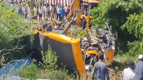 இதனால் சில மீட்டர் தூரம் தூக்கி வீசப்பட்டு, பள்ளி வாகனம் கடுமையாக சேதமடைந்தது. இந்த விபத்து நடைபெற்றபோது பள்ளி வாகனத்தில் 4 மாணவர்களும், ஓட்டுநரும் இருந்துள்ளனர். இதில், மாணவர்கள் சாருமதியும் (15), நிமலேஷும் (10) சம்பவ இடத்திலேயே உயிரிழந்தனர்.