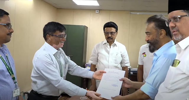 மக்கள் நீதி மய்யம் தலைவர் கமல் ஹாசன் வேட்புமனு தாக்கல் செய்தபோது, துணை முதல்வர் உதயநிதி ஸ்டாலின் உள்ளிட்டோர் உடனிருந்தார்கள்.