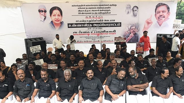 கள்ளக்குறிச்சி விஷச்சாராய உயிரிழப்புகள் குறித்து சட்டப்பேரவையில் அனுமதி வழங்காததைக் கண்டித்தும், கள்ளச்சாராய உயிரிழப்புகள் குறித்து சிபிஐ விசாரணை கோரியும் அதிமுக பொதுச்செயலாளர் எடப்பாடி பழனிசாமி தலைமையில், அதிமுக எம்எல்ஏ-க்கள் சென்னை எழும்பூர் ராஜரத்தினம் மைதானத்தில் உண்ணாவிரத அறப்போராட்டத்தில் ஈடுபட்டு வருகிறார்கள்.