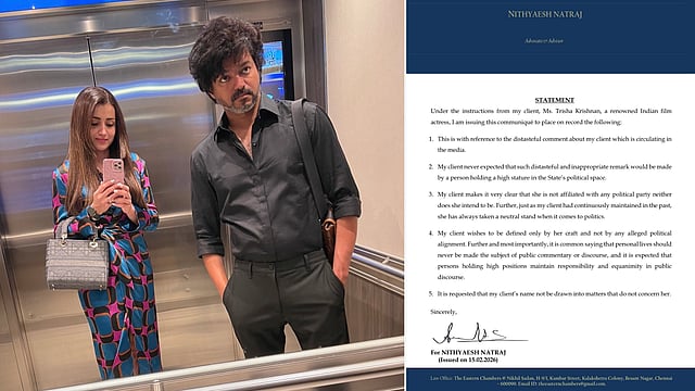 “எனது கட்சிக்காரரும், புகழ்பெற்ற இந்திய நடிகையுமான த்ரிஷா கிருஷ்ணனின் அறிவுறுத்தலின் பேரில், பின்வருவனவற்றைப் பதிவு செய்ய இந்த அறிக்கையை வெளியிடுகிறேன். இது, த்ரிஷாவைப் பற்றி ஊடகங்களில் பரவி வரும் அருவருப்பான கருத்து தொடர்பான அறிக்கை இது.