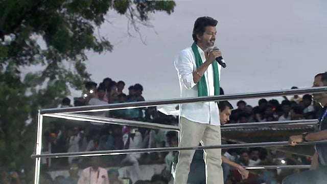 திருவாரூர் தெற்கு வீதியில் தமிழக வெற்றிக் கழகத்தின் தலைவர் விஜய் பரப்புரையில் ஈடுபட்டார். விவசாயத்தைக் குறிக்கும் வகையில் தோளில் பச்சைத் துண்டுடன் வந்து பரப்புரை செய்தார்.