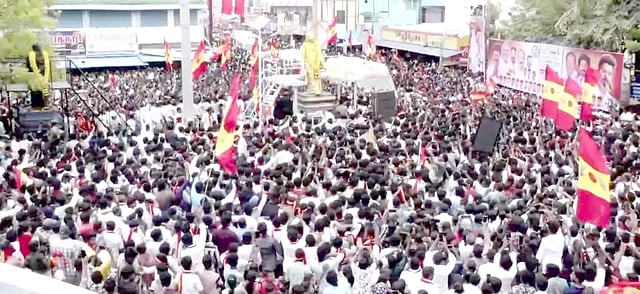 பிரசாரத்தை மேற்கொள்ளும் அண்ணா சிலை சந்திப்பை நெருங்கியதும் பிரசார வாகனம் சற்று வேகம் குறைந்து பயணிக்கத் தொடங்கியது. வழிநெடுக்க ஆங்காங்கே தொண்டர்கள் மற்றும் மக்கள் விஜயைக் கையசைத்தபடி வரவேற்றார்கள்.