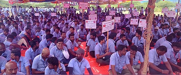ஸ்ரீ பெரும்புதூருக்கு அருகே சுங்குவார்சத்திரத்தில் உள்ள சாம்சங் தொழிற்சாலையைச் சேர்ந்த ஆயிரக்கணக்கான ஊழியர்கள் கடந்த செப்.9-ல் தொடங்கி ஊதிய உயர்வு, தொழிற்சங்க அங்கீகாரம், 8 மணி நேர வேலை உள்ளிட்ட 20 அம்ச கோரிக்கைகளை முன்வைத்து போராட்டம் நடத்தி வருகின்றனர்.