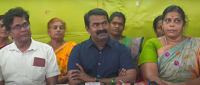 அரசுப் பள்ளியில் சர்ச்சைக்குரிய வகையில் பேசிய மகாவிஷ்ணுவைப் பயங்கரவாதியைப்போல கைது செய்தது ஏன் என நாம் தமிழர் தலைமை ஒருங்கிணைப்பாளர் சீமான் கேள்வியெழுப்பியுள்ளார்.