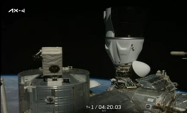 ஆக்ஸிம் 4 திட்டத்திற்காக, புளோரிடாவில் உள்ள நாசாவின் கென்னடி விண்வெளி மையத்திலிருந்து ஏவப்பட்ட இருபத்தெட்டு மணி நேரத்திற்குப் பிறகு, டிராகன் விண்கலம் இன்று (ஜூன் 26) சர்வதேச விண்வெளி நிலையத்துடன் இணைந்தது.