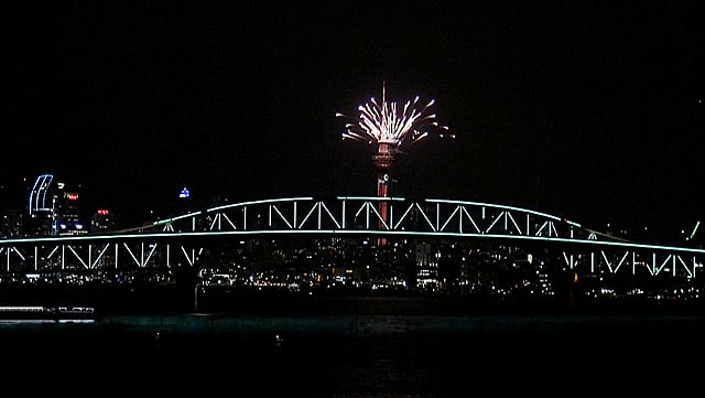 இதைத் தொடர்ந்து நியூசிலாந்தும் புத்தாண்டை வெகு விமரிசையாக வரவேற்றுள்ளது. புத்தாண்டு கொண்டாட்டத்துக்கு தலைநகர் ஆக்லாந்தில் சிறப்பு ஏற்பாடு செய்யப்பட்டிருந்தது. நியூசிலாந்திலேயே உயரமான கட்டடமான ஸ்கை டவரில் கண்கவர் வாணவேடிக்கை நிகழ்த்தப்பட்டது. அங்கு குவிந்திருந்த ஏராளமான மக்கள் புத்தாண்டு பிறந்தவுடன் மகிழ்ச்சை வெளிப்படுத்தி மிகுந்த உற்சாகத்துடன் வாழ்த்துகளைப் பரிமாறிக்கொண்டார்கள்.