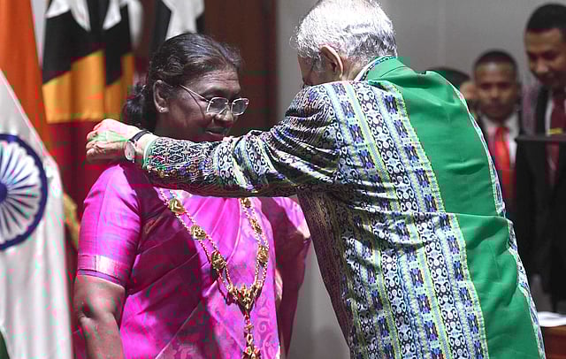 இந்திய குடியரசுத் தலைவர் திரௌபதி முர்முவுக்கு திமோர் லெஸ்தே நாட்டின் மிக உயரிய விருதான, `கிராண்ட் காலர் ஆஃப் தி ஆர்டர் ஆஃப் திமோர் லெஸ்தே’ வழங்கப்பட்டது