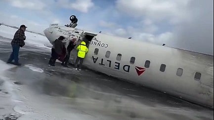 கனடா டொராண்டோ பியர்சன் சர்வதேச விமான நிலையத்தில் டெல்டா ரக விமானம் தலைகீழாகக் கவிழ்ந்து விபத்துள்ளானதில் 18 பேர் காயமடைந்துள்ளார்கள்.