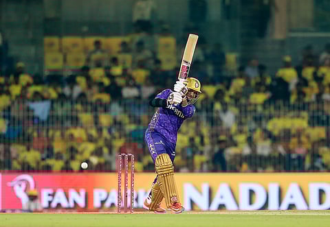 பந்துவீசியபோது ஆரம்பத்தில் இருந்தே சிஎஸ்கே வீரர்களின் உடல்மொழி சோர்வாக இருந்தது. இதை கேகேஆர் பேட்டர்கள் பயன்படுத்திக் கொண்டார்கள். அறிமுக வீரர் அன்ஷுல் கம்போஜின் முதல் பந்திலேயே சிக்ஸர் அடித்து வரவேற்றார் டி காக். 4 ஓவர்களில் 46 ரன்கள் எடுத்தது கேகேஆர். கம்போஜ் தனது 2-வது ஓவரில் 3 சிக்ஸர்கள் அடித்து நன்கு விளையாடி வந்த குயிண்டன் டி காக்கை 23 ரன்களில் வீழ்த்தினார். பவர்பிளேயில் 7 சிக்ஸர்கள் அடித்து 71 ரன்கள் எடுத்தது கேகேஆர்.