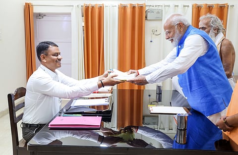 மக்களவைத் தேர்தலில் வாரணாசி தொகுதியில் மூன்றாவது முறையாகப் போட்டியிடும் பிரதமர் நரேந்திர மோடி இன்று வேட்புமனு தாக்கல் செய்தார்.