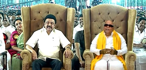 விழாவின் தொடக்கத்தில் செயற்கை நுண்ணறிவு தொழில்நுட்பம் வழியாக உருவாக்கப்பட்ட மறைந்த தமிழக முதல்வர் கலைஞர் கருணாநிதி, இந்த விழாவுக்கான வாழ்த்துரையை வழங்கினார்.