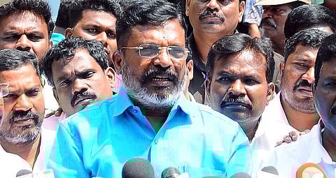 `மக்கள் பிரச்னைகளுக்காக கூட்டணிக்கு எதிரணியில் இருப்பவர்களுடன் முன்பு கைகோர்த்துப் பணியாற்றியிருக்கிறோம். தேர்தல் நிலைப்பாடு வேறு, மக்கள் பிரச்னைகளுக்காக களமாடும் நிலைப்பாடு வேறு’ என்று விசிக தலைவர் திருமாவளவன் திருச்சி விமானநிலையத்தில் இன்று செய்தியாளர்களுக்குப் பேட்டியளித்தார்.